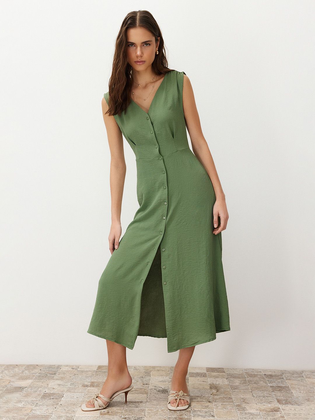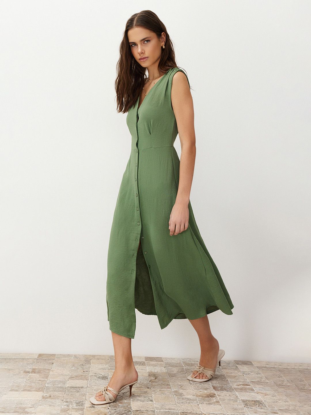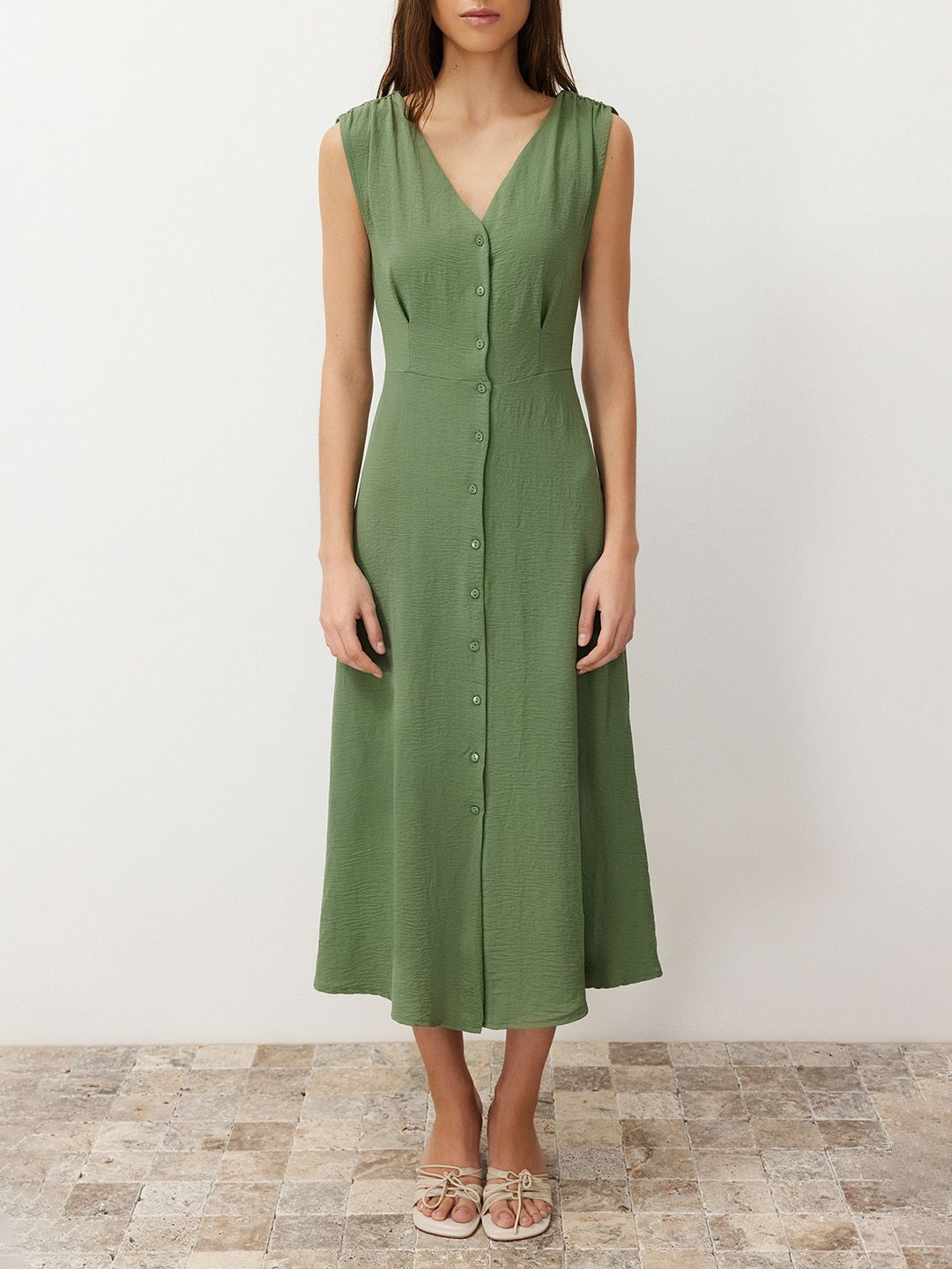 Sleeveless A-Line Midi Dress
